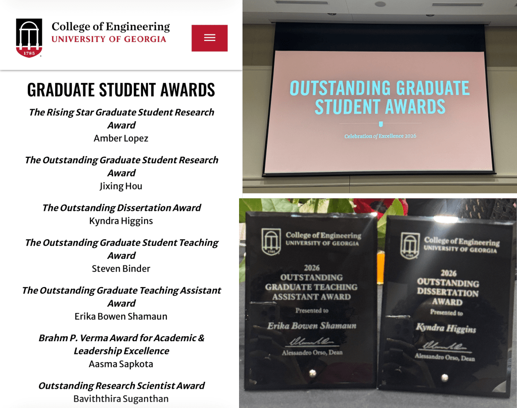 Current PhD candidate, Erika was awarded the College of Engineering Outstanding Graduate Teaching Assistant Award, a well-deserved recognition of her work in the classroom!