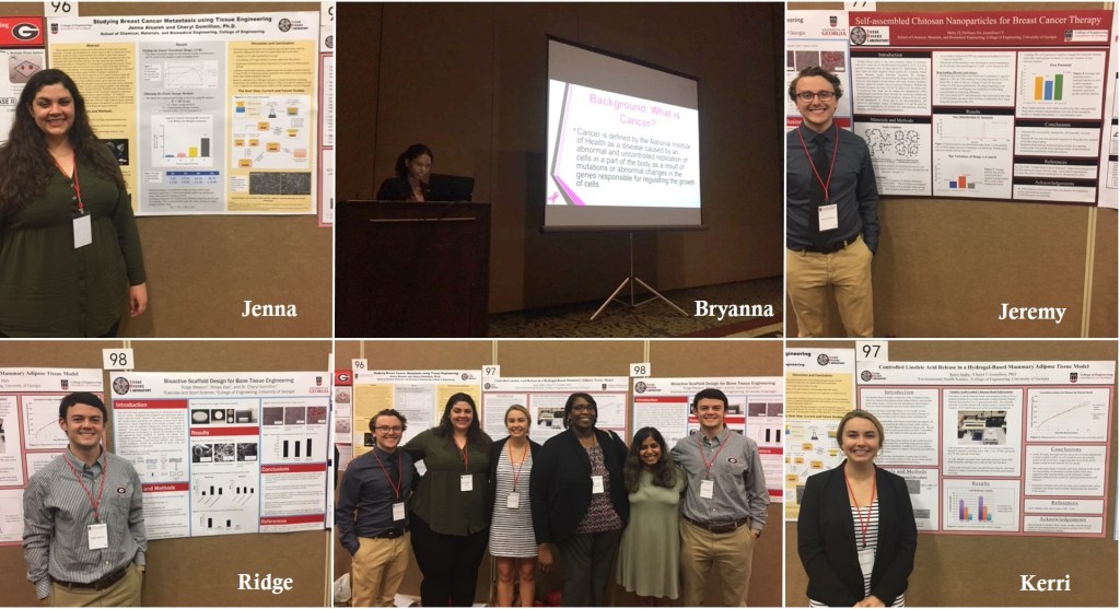 Today was a big day as members of the Gomillion Tissue RegenX Lab presented their work at the annual Center for Undergraduate Research Opportunities (CURO) Symposium held at the Classic Center here in Athens. The Gomillion Lab was well-represented with 4 posters and 1 podium presentation. Great job, everyone!