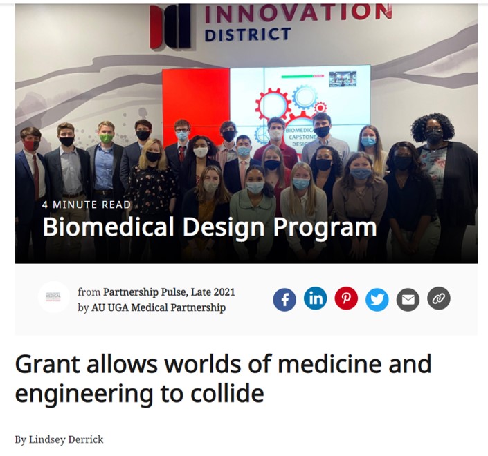 Check out this article highlighting Dr. Gomillion’s work with campus colleagues from the Medical Partnership and UGA Innovation Gateway for engineering capstone design.