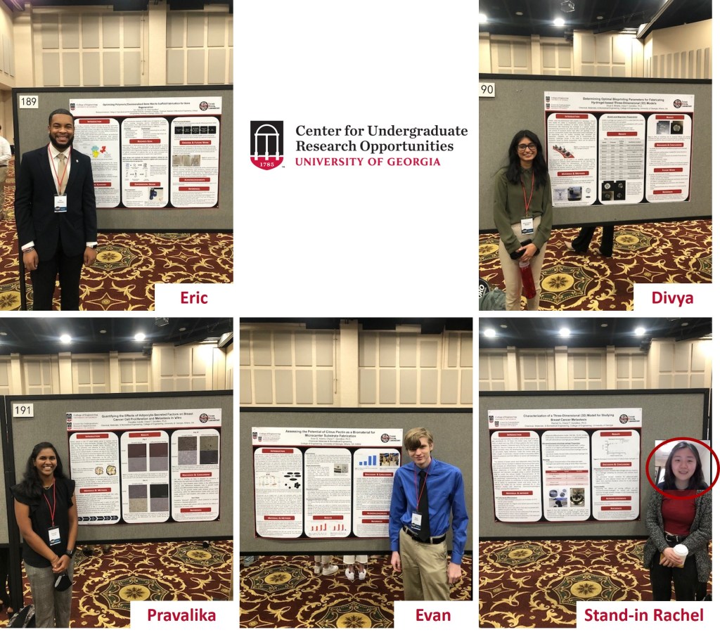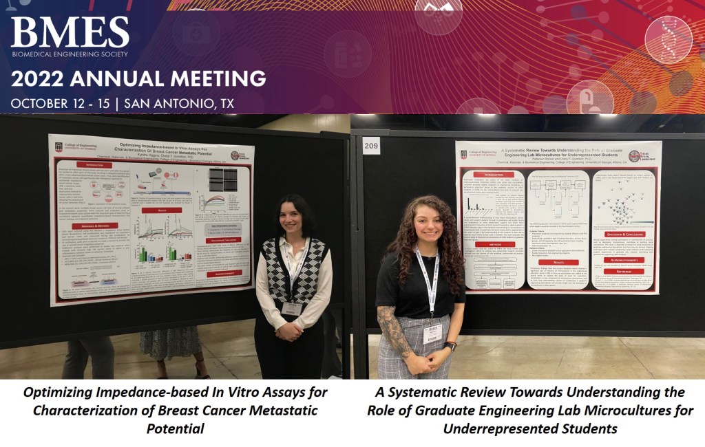 What better way to start the new semester than with good news. Congratulations to undergraduate lab member Ciara Mitchell for being named recipient of the UGA CURO Undergraduate Research Assistantship for Fall 2022! Also, congratulations to recent graduate Kianna Young for starting a new position as Bioengineer at 3D Systems.
