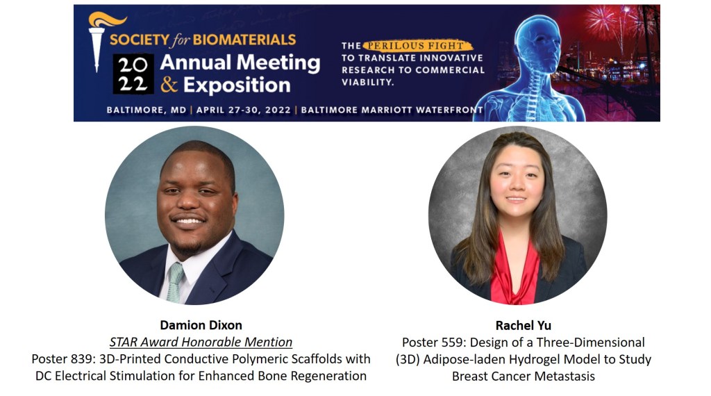 Looking forward to a return to in-person conferences with #SFB2022 in Baltimore. We are excited for graduate student Damion and undergraduate student Rachel to have the opportunity to share what they’ve been working on in lab! Congratulations to Damion on being awarded a STAR Award Honorable Mention recognition for his work!!