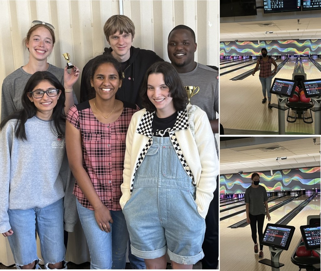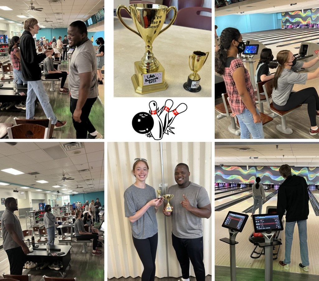We made it to the end of another semester/school year! What better way to celebrate than with a little lab fun bowling. We had one person missing since Eric couldn’t make it, but overall had a great time. Who knew what competitive nature exists among many of our lab members?! Trophies went home with Damion for 1st place and Kianna for 2nd place for highest scores for students. There may have to be a rematch in the near future.