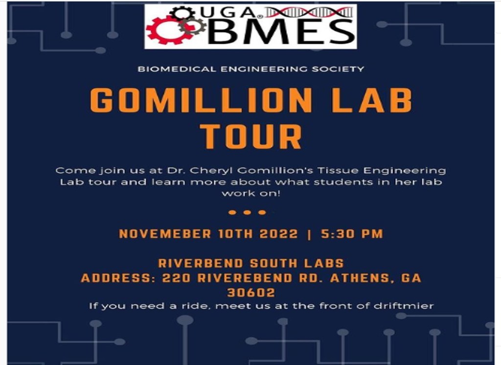 We’re hosting a lab tour tomorrow for our BMES Student Chapter. Come out to talk with our lab members and learn more about our work!