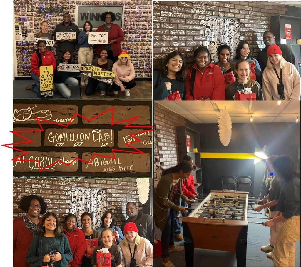 Today was Reading Day, but also a perfect day for a little lab fun before the holidays. We’re getting pretty good at escape rooms, with a successful escape from the Office Christmas Party room at Escape the Space. We escaped with 14 minutes to spare and placed our lab mark on the winner’s wall (check out those cells!). After a little break, we’re all ready for the home stretch here at the end of the semester. Best of luck to everyone for exams, and we hope everyone has a great holiday season and winter break!